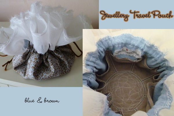 For this pouch, I used a lovely swirl print quilter's cotton, solid cottons, and white organza for the top (repurposed from one of my wedding chair sashes!).